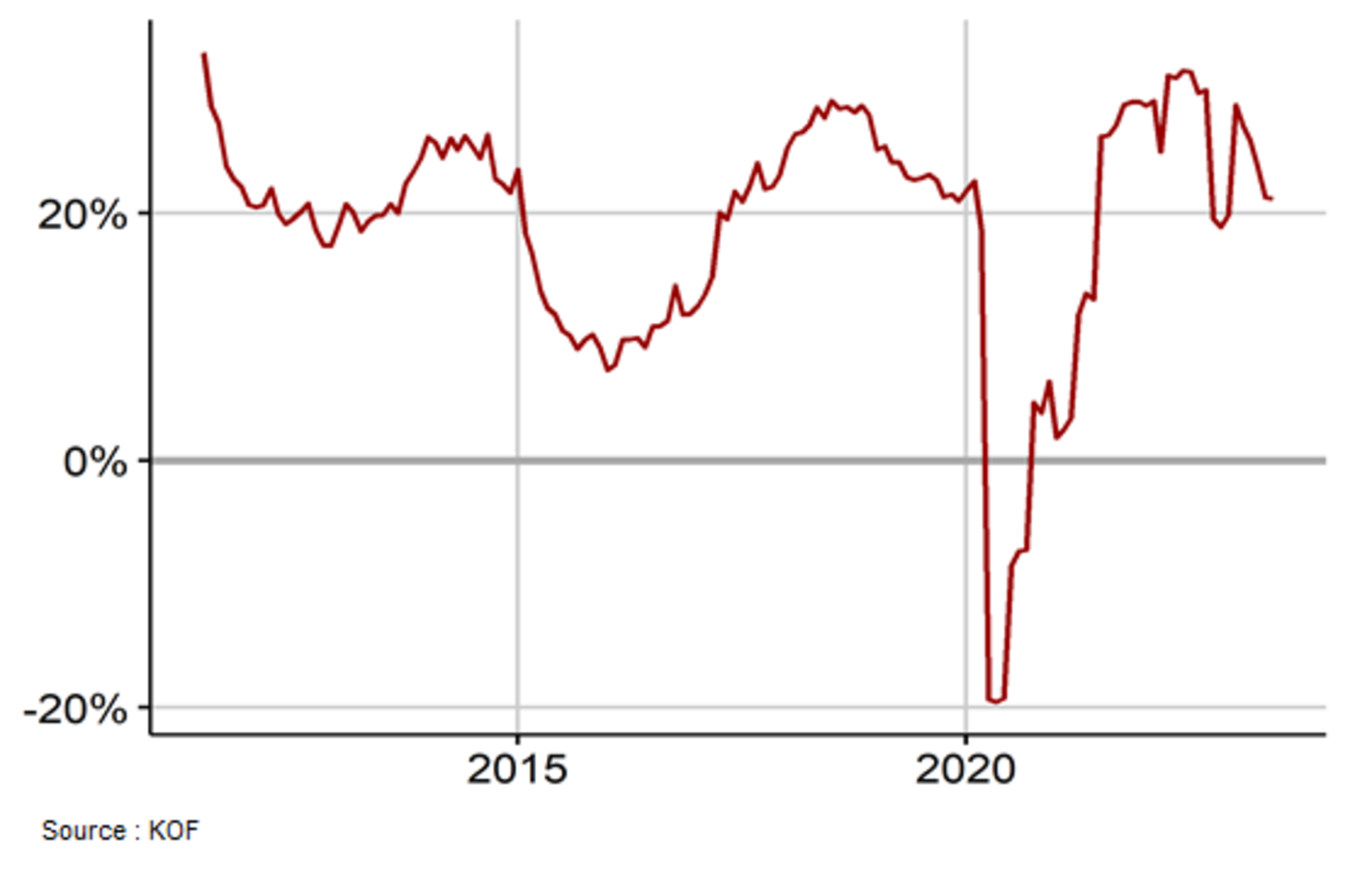 Une part considérable de la hausse de l’inflation résulte des marges plus élevées des entreprises. Selon une analyse du FMI, l’augmentation des bénéfices est à l’origine de près de la moitié du renchérissement en Europe. La situation bénéficiaire des entreprises est bonne. Dans le cadre des enquêtes du centre conjoncturel KOF, les entreprises qualifient la situation de leurs affaires la plupart du temps de bonne.