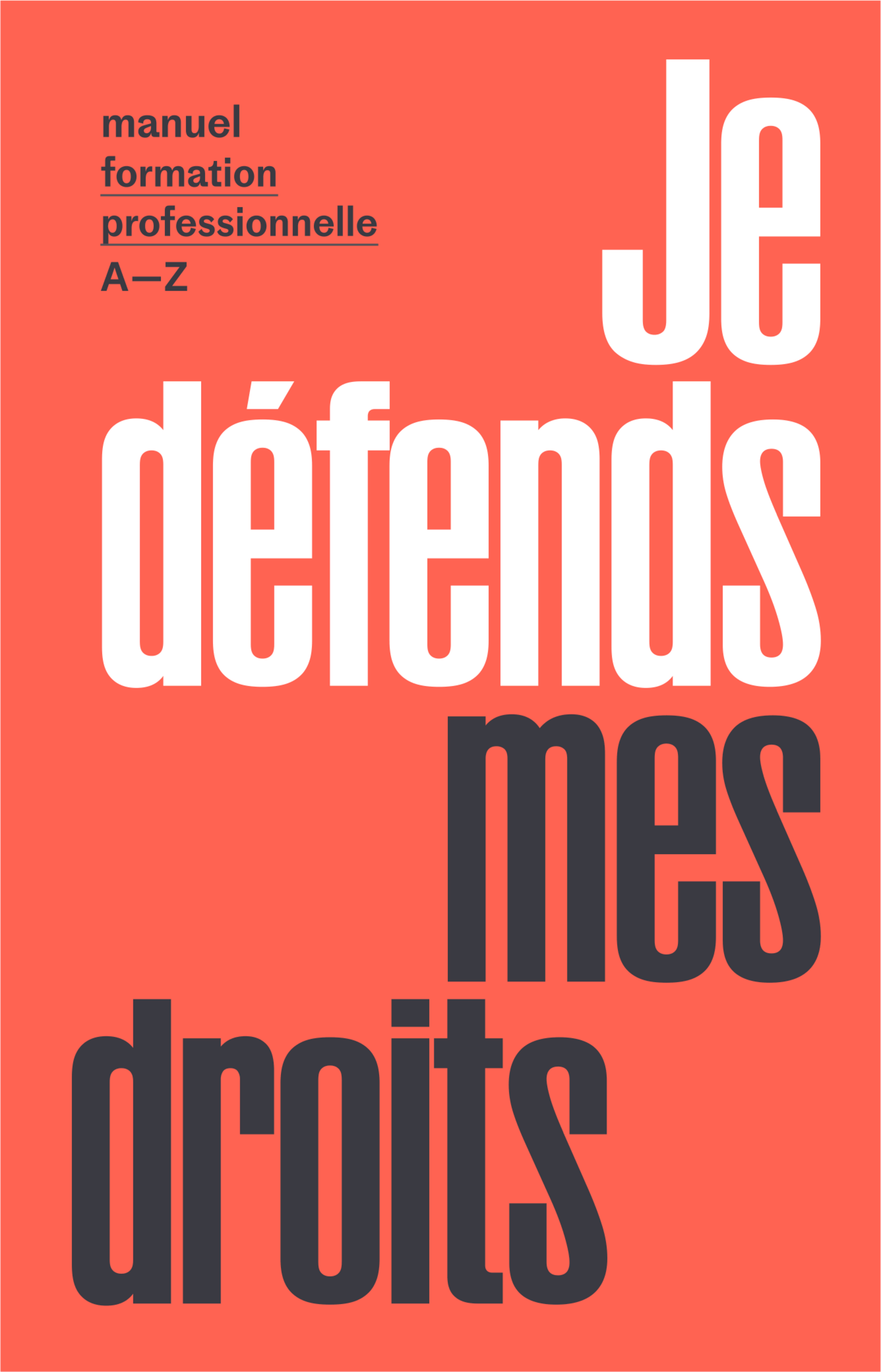 Cette brochure est « LE » manuel de référence pour les personnes qui font – ou veulent faire – une formation professionnelle initiale. Ce glossaire de A à Z vient d’être réédité et entièrement remanié (plus de 500 entrées !). Il permet de comprendre les principaux éléments du droit du travail qui concernent la formation professionnelle. On y trouve aussi de nombreux liens et adresses utiles ainsi que des références aux textes de loi. Le manuel peut être consulté dans sa version électronique ou commandé en format imprimé (petite brochure de 268 pages).