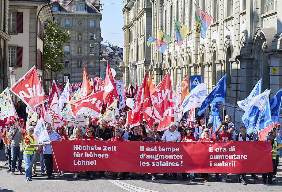 Plus que 15'000 travailleuses et travailleurs de toute la Suisse sont descendus aujourd’hui dans la rue à Berne sous la devise « Il est temps d’augmenter les salaires ». Ils et elles demandent aux employeurs des augmentations de salaire substantielles. Après plusieurs années de perte de salaire réel et compte tenu de l’augmentation des coûts, cette revendication est plus nécessaire que jamais. La revendication est claire : en vue des négociations salariales à venir, les salaires réels doivent à nouveau augmenter en 2025.