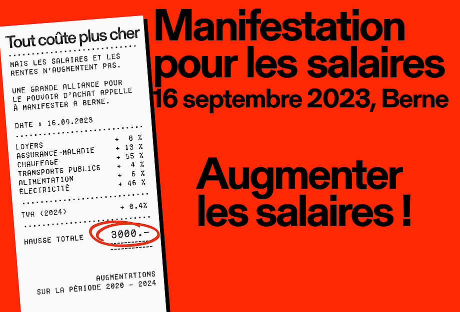 Pour Daniel Lampart, économiste en chef de l’USS, une chose est sûre : « Une augmentation de salaire de 5 % est nécessaire, car le besoin de rattrapage des dernières années est considérable. La croissance de la productivité et le contexte économique permettent une telle hausse salariale ». Et le président de l’USS Pierre-Yves Maillard de souligner : « Les entreprises augmentent leurs prix. Mais dès qu’on parle des salaires, on nous dit que les caisses sont vides. On ne peut pas continuer comme cela : les salaires doivent maintenant augmenter. Voilà pourquoi les syndicats appellent à une grande manifestation nationale le16 septembre à Berne ».