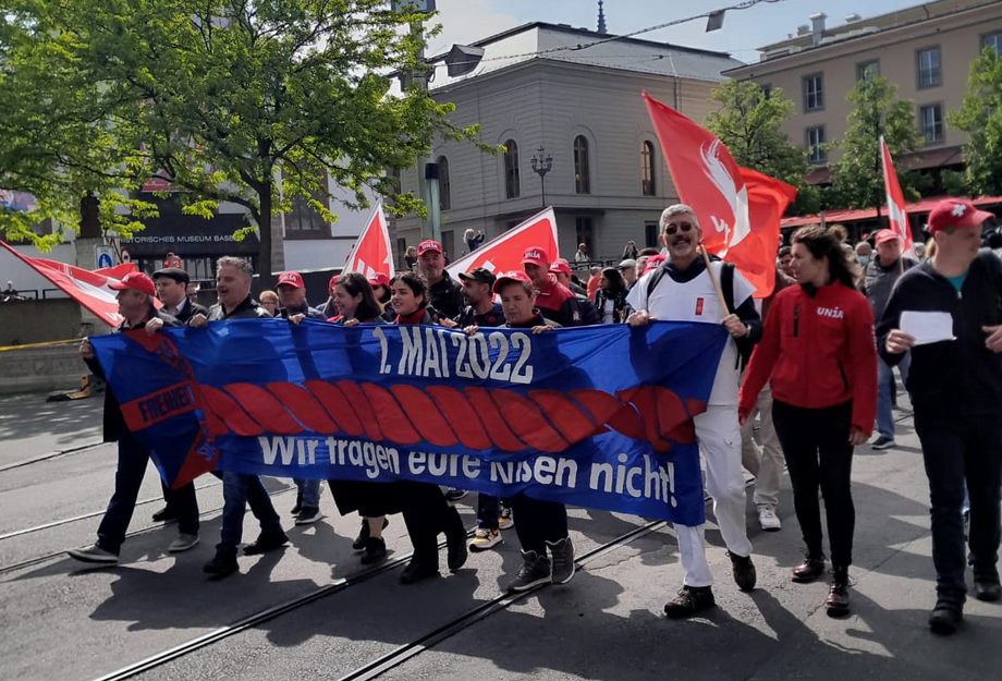 Ayant la guerre en Ukraine à l’esprit, beaucoup d’oratrices et d’orateurs ont souligné que la paix est une condition pour pouvoir vivre dans la dignité. La liberté des peuples à décider de leur organisation et de leur destin est le fondement de l’exercice et de la défense des droits sociaux. Et toute véritable solidarité entre les travailleuses et travailleurs s’exerce au-delà des frontières et indépendamment des nationalités. Les militant-e-s syndicaux ont appelé à ce que les réfugié-e-s de guerre trouvent en Suisse une terre d’accueil et que notre pays fasse son maximum pour soutenir la population civile en Ukraine. L’horreur absolue que la guerre inflige à des millions de femmes, d’hommes et d’enfants exige un engagement sans réserve, en Suisse et sur le plan international.